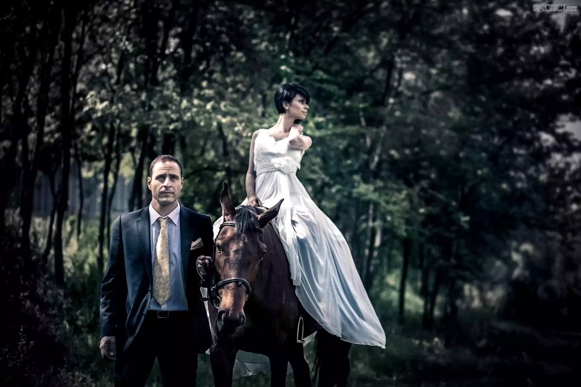 Koń, Mężczyzna, Las, Kobieta - faceci.biz
